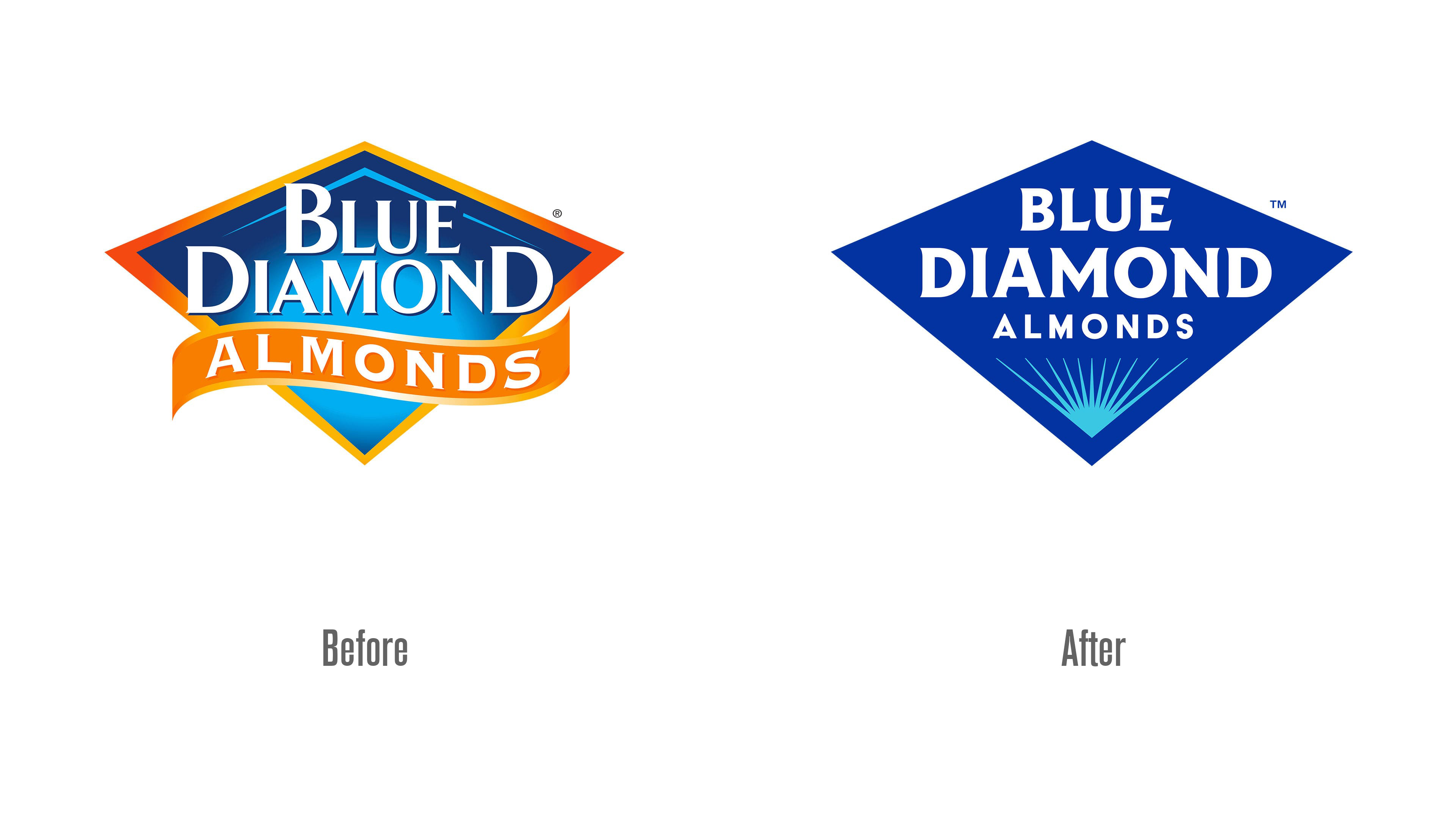 盡管 Blue Diamond Growers 的舊 LOGO 已使用多年并積累了一定市場辨識度,但隨著傳播渠道的多元化,其設計缺陷逐漸凸顯。舊標識包含大量復雜線條、裝飾性陰影與細小卷曲元素,視覺呈現過于繁瑣,在手機端、社交媒體封面等現代傳播場景中易出現模糊問題,難以快速抓住消費者注意力。標設網認為,傳統品牌 LOGO 在長期使用后,往往會因設計語言老化與傳播場景脫節(jié),而 Blue Diamond Growers 主動迭代 LOGO,正是為了破解這一影響品牌傳播效率的核心問題。