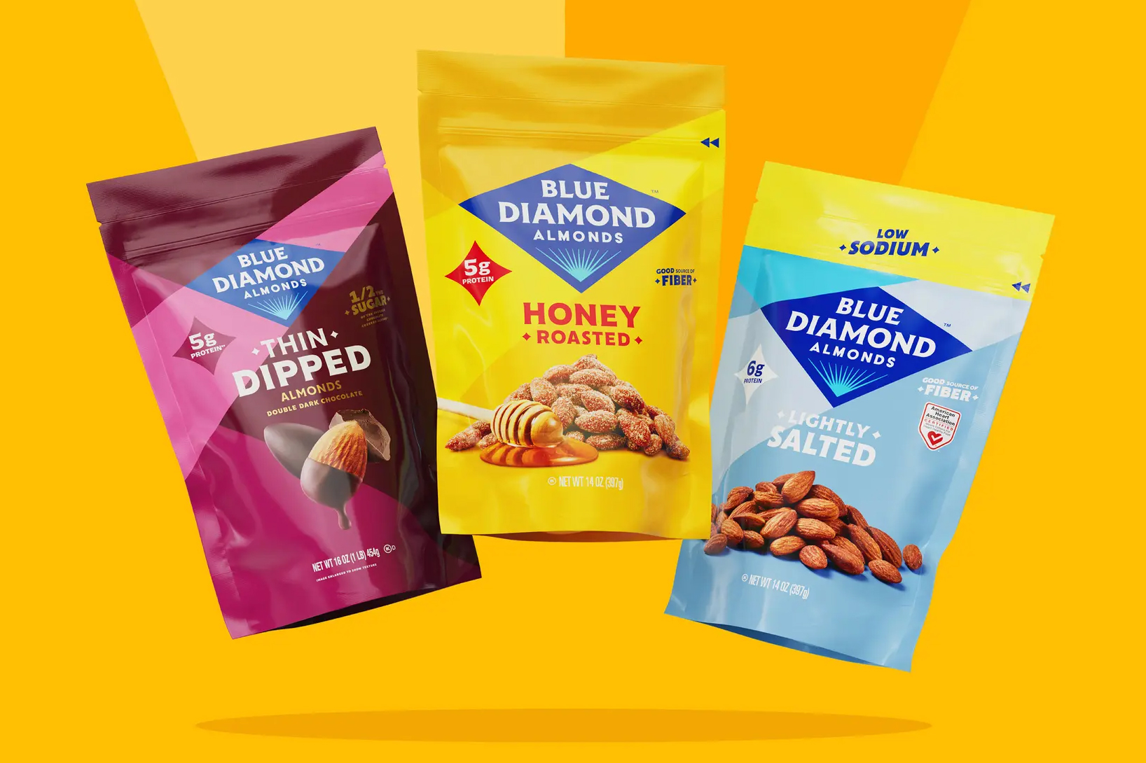 此次品牌升級并非僅停留在 LOGO 層面,產品包裝也同步調整。新包裝將 LOGO 置于視覺中心,杏仁圖案轉為輔助元素,同時采用更鮮明的色彩體系,幫助消費者快速區(qū)分不同口味與產品品類,提升貨架識別效率。Blue Diamond Growers 營銷副總裁表示,升級后的視覺語言將進一步強化杏仁與健康生活方式的關聯;而設計團隊新增的小星星、光澤等裝飾元素,也讓品牌形象更適配數字媒體傳播,助力品牌在全球市場的進一步滲透。